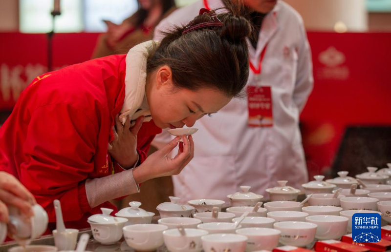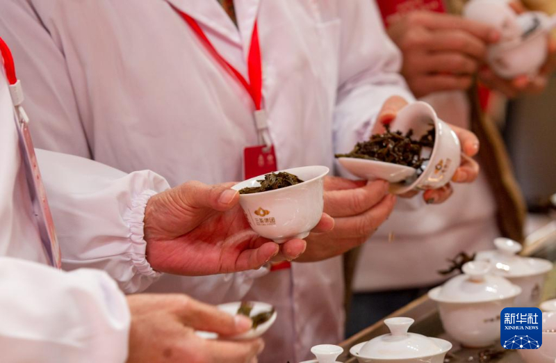 12月26日,在茶王赛现场,一名工作人员在评审茶样。新华社发(陈颖 摄)