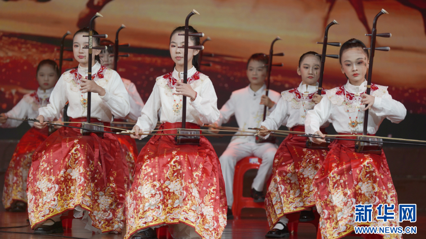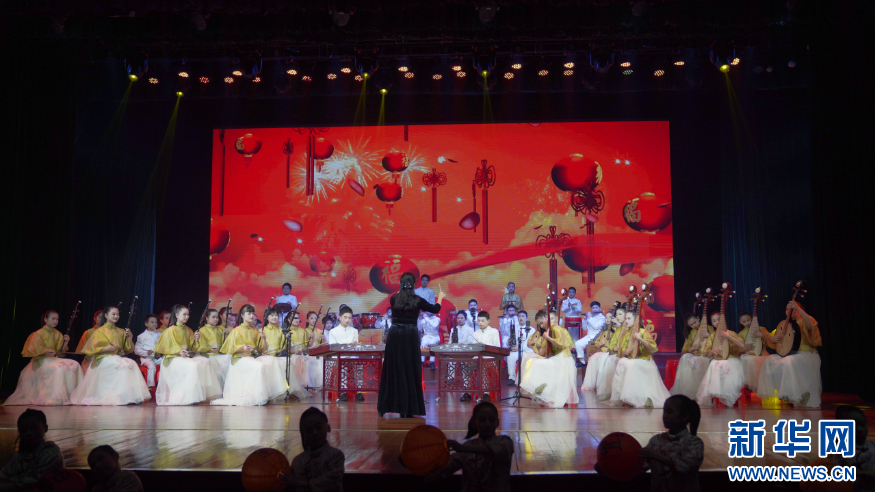 认真演奏民乐的青少年。新华网发(林楷煜 摄)