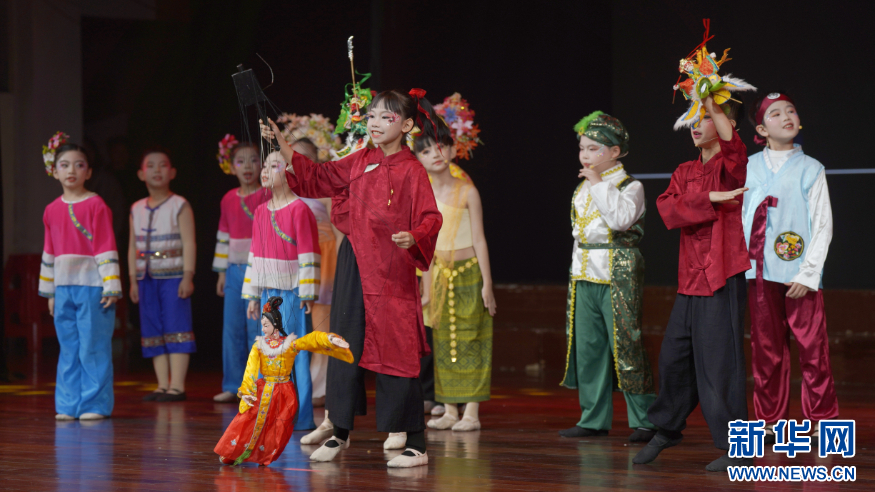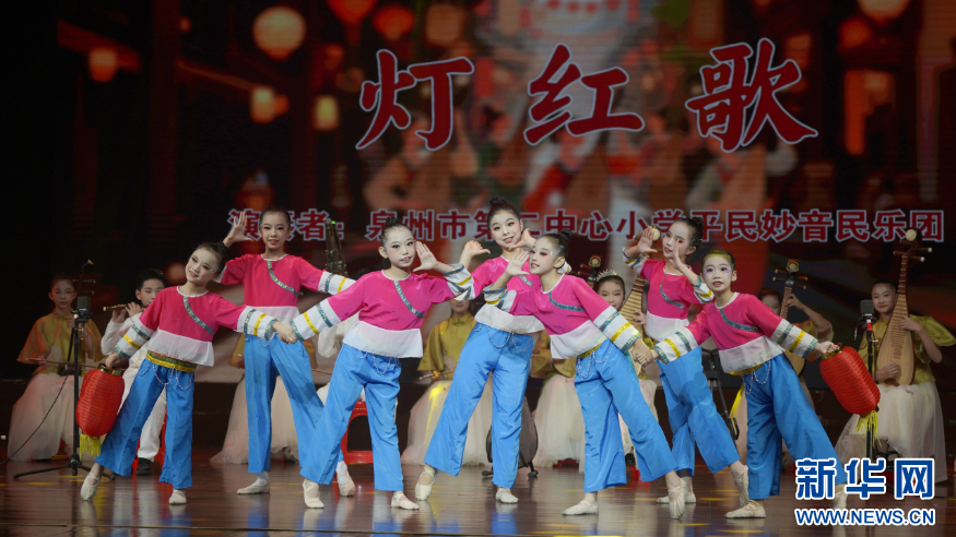 梨园戏、掌中木偶、提线木偶社团的小演员们表演。新华网发(林楷煜 摄)