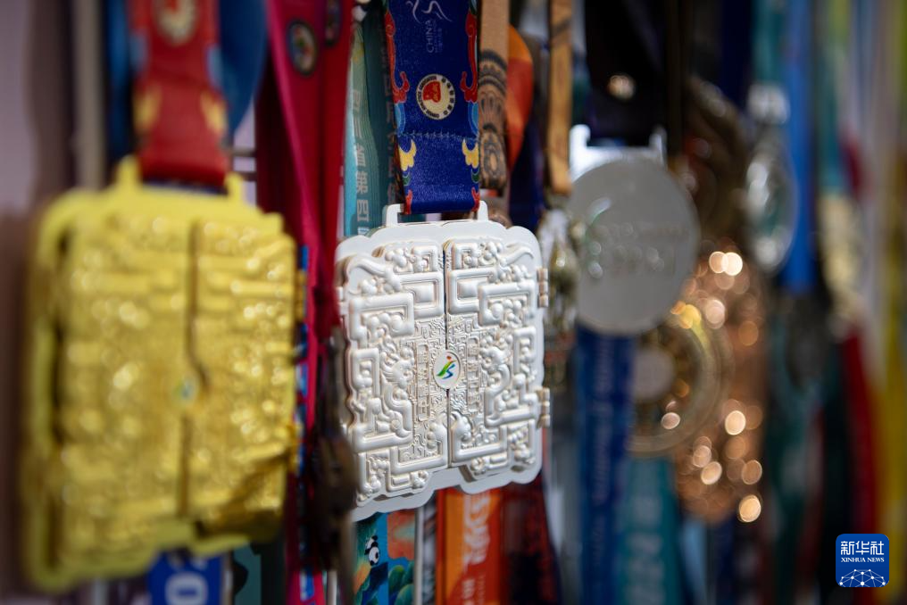 1月8日,一家奖牌生产企业在博览会上展示各种马拉松赛事奖牌。新华社记者 魏培全 摄