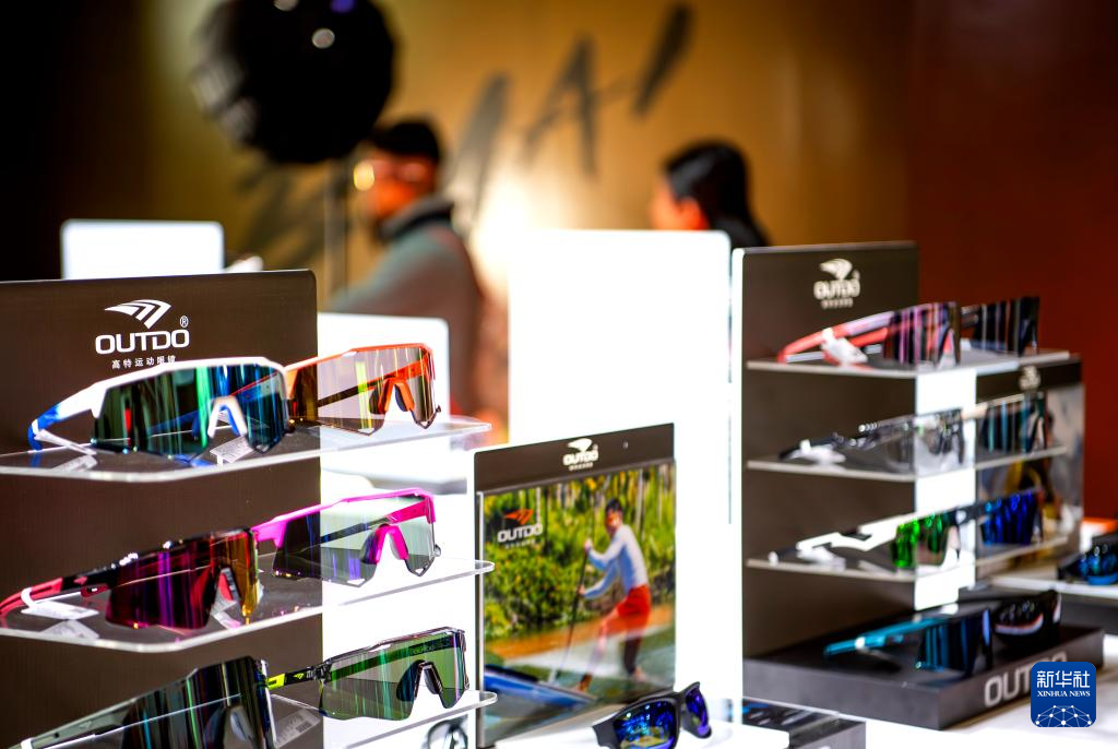 这是1月8日在博览会上拍摄的马拉松比赛专业眼镜展台。新华社记者 魏培全 摄