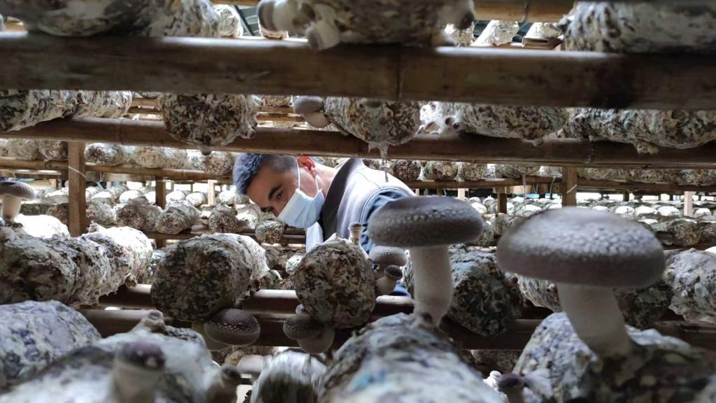 福州罗源县霍口畲族乡东宅村菇农在观察香菇长势。(受访者供图)
