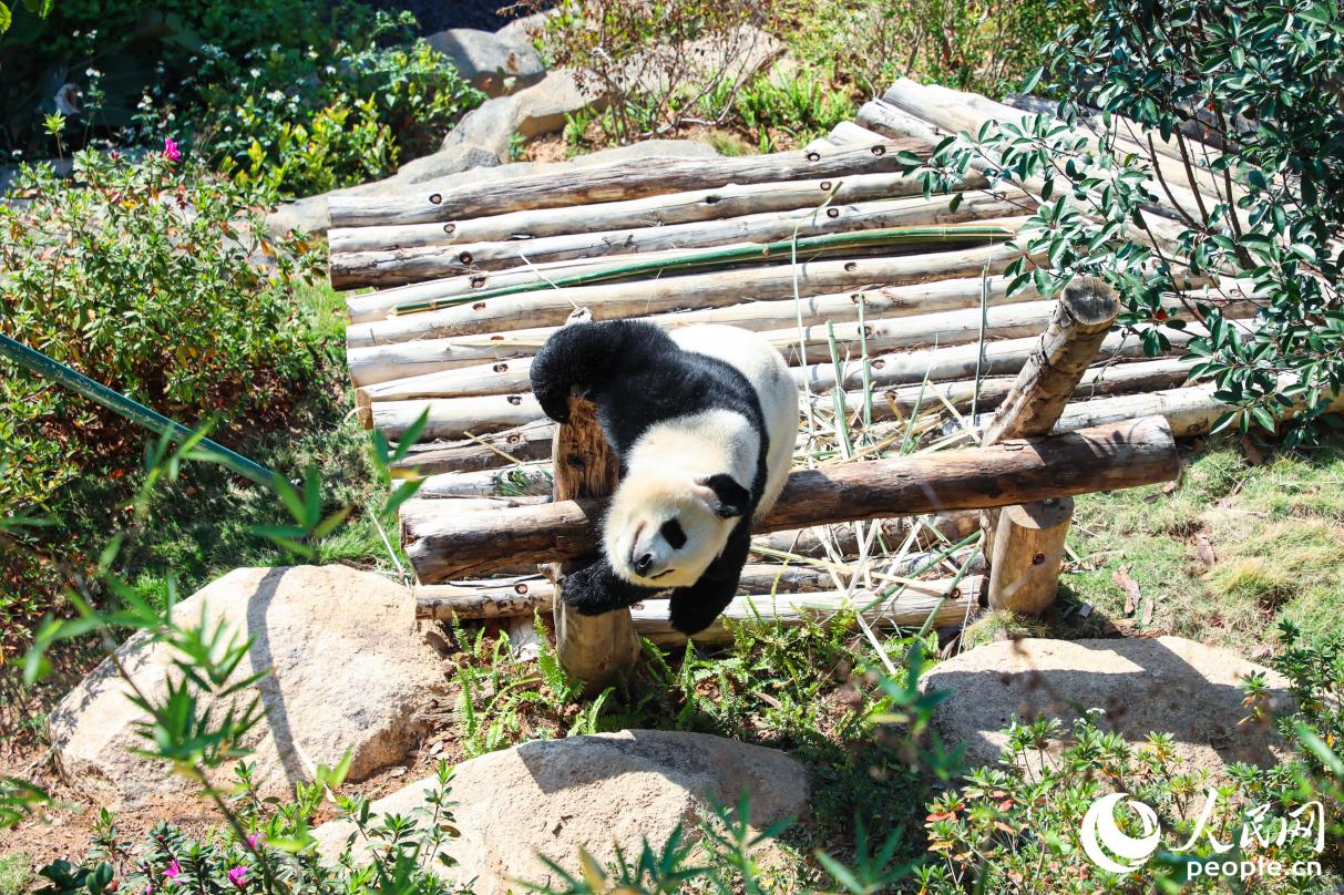熊猫在园区内“漫步”。人民网记者 李唯一摄
