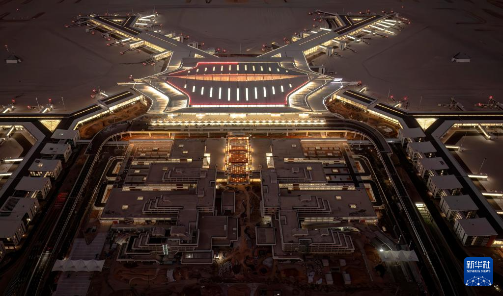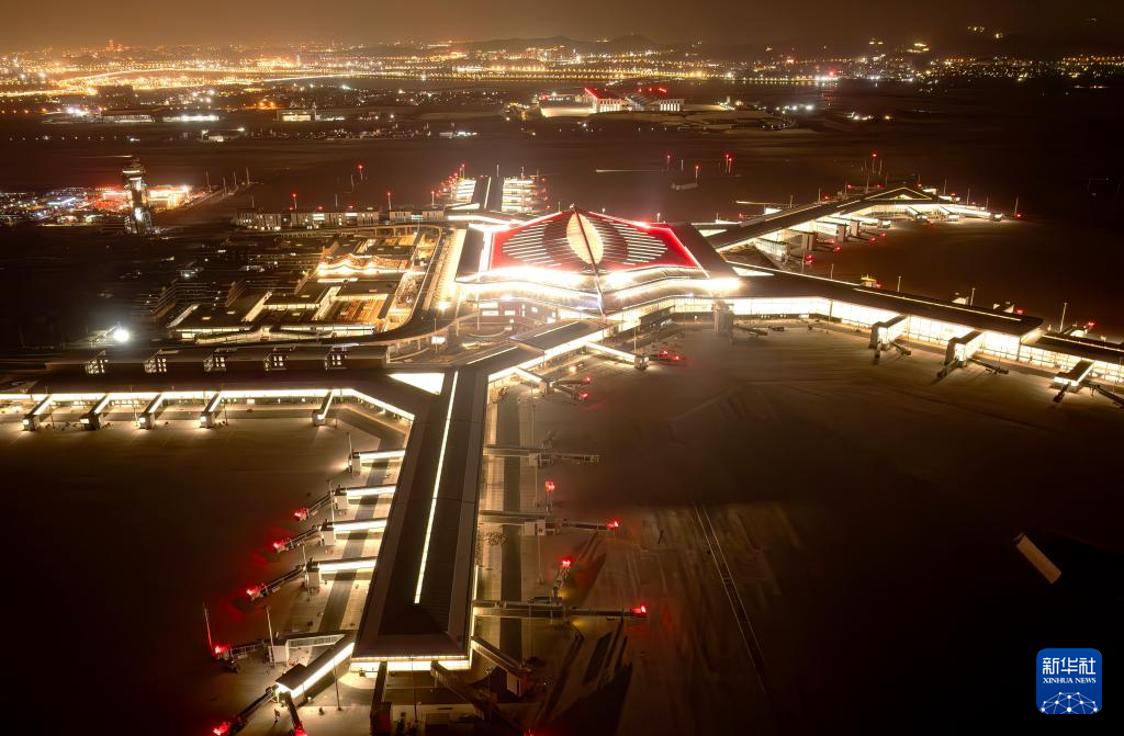 厦门翔安国际机场项目夜景(1月20日摄,无人机照片)。新华社记者 魏培全 摄