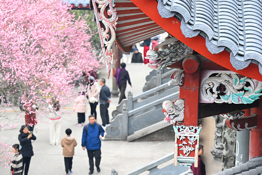 连日来,福州晋安区寿山乡千年古刹林阳寺内,600余株红梅、白梅、绿梅、宫粉梅、美人梅等次第绽放,正式迎来最佳观赏期,春节前后将达盛放高峰。