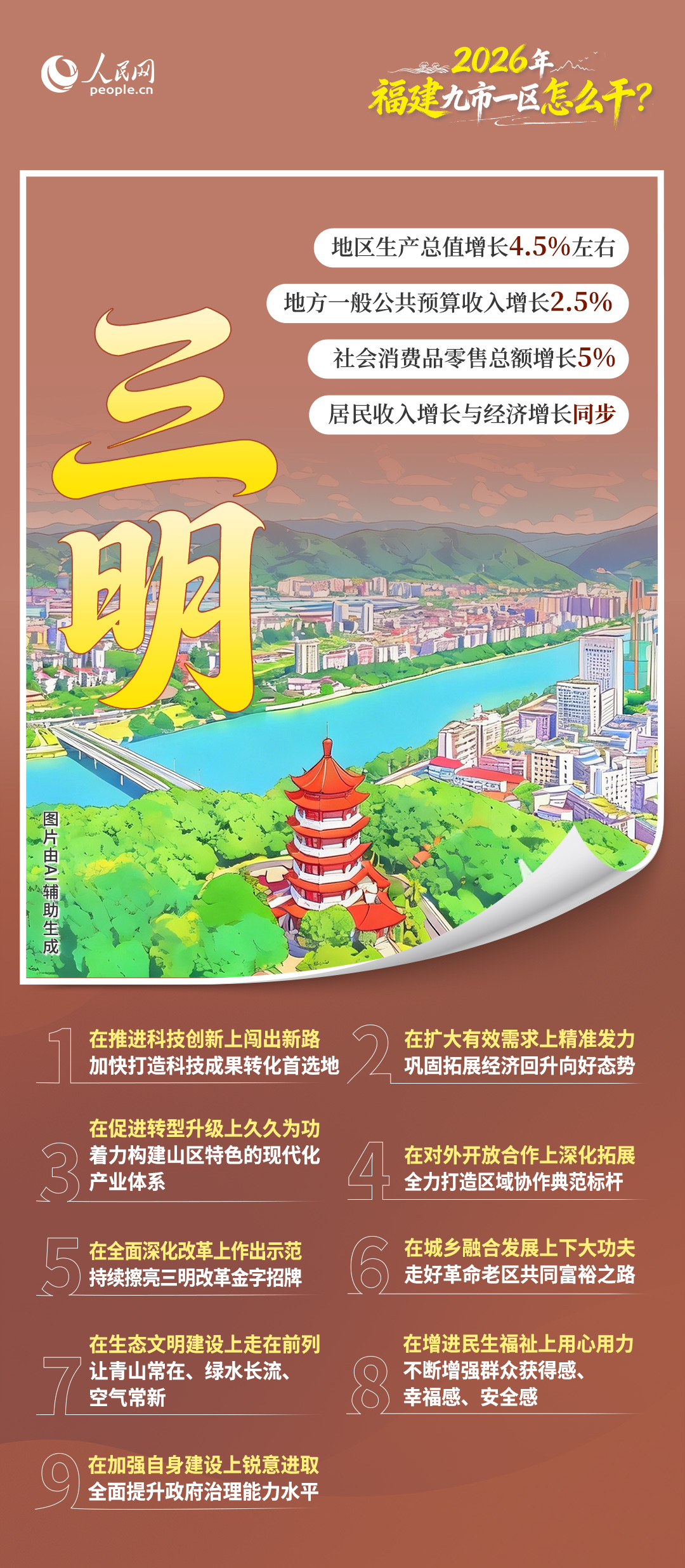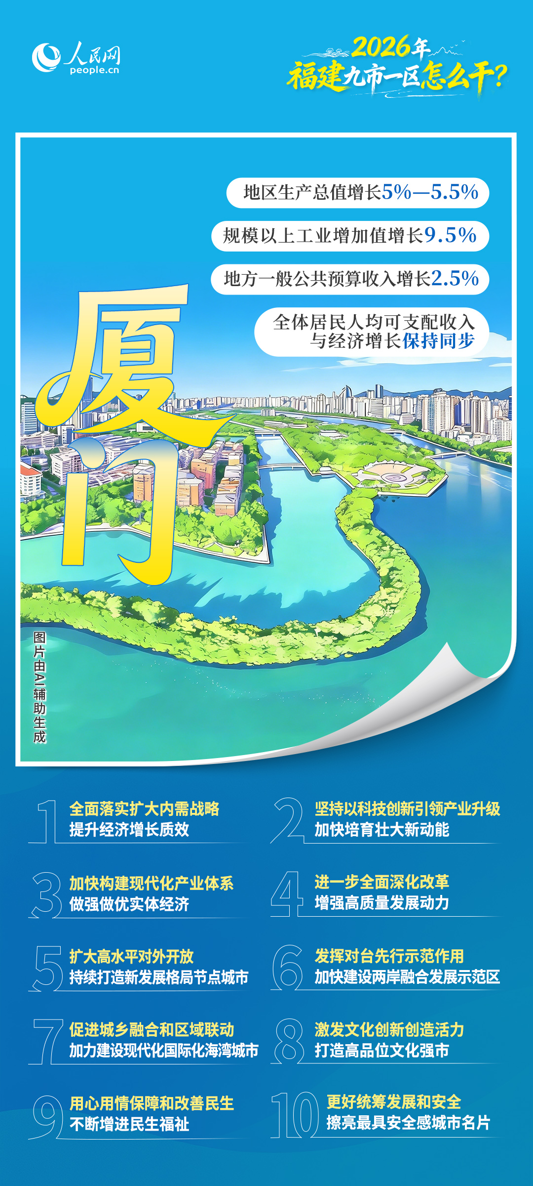 近期,福建各地两会陆续召开。2026年是“十五五”开局之年,福建九市一区都在各自的政府工作报告中提出了什么目标?重点将在哪些方面发力?一起来看——