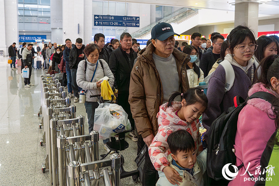 旅客在福州火车站候车大厅有序排队检票。实习生 李雨泽摄