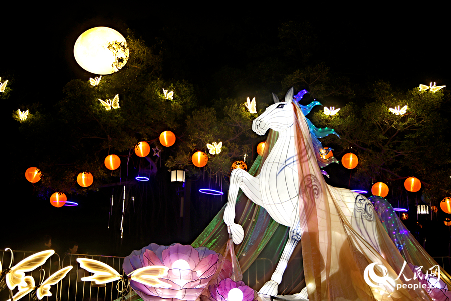 厦门火车站北广场的马造型花灯身披繁花。人民网记者 陈博摄