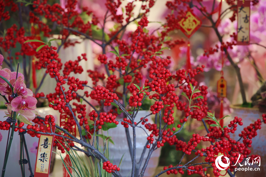 缤纷多彩的年宵花引人驻足拍照。人民网记者 陈博摄