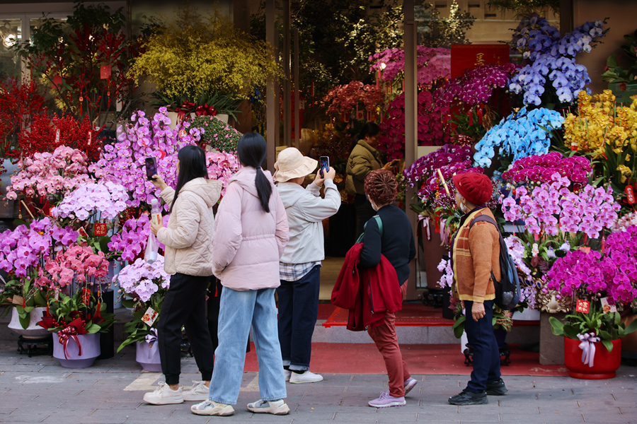 人民网厦门2月5日电 (陈博、余乃鎏)绚丽多彩的蝴蝶兰、香气四溢的百合花、红红火火的北美冬青……随着马年春节脚步的临近,厦门市思明区溪岸路的花鸟市场,马年专属的“花”式年味扑面而来,姹紫嫣红的年宵花与熙熙攘攘的人群交织,勾勒出一幅幅热闹非凡的新春花市图景。