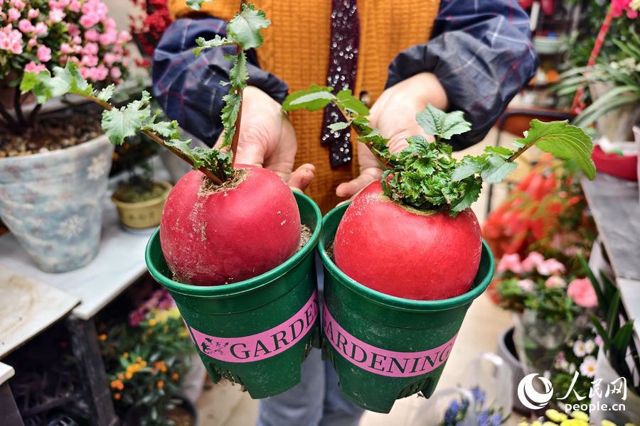 深受年轻群体喜爱的红萝卜盆栽,寓意红运好彩头。人民网记者 陈博摄