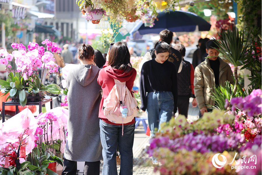 热热闹闹的花市成为市民游客休闲放松好去处。人民网记者 陈博摄