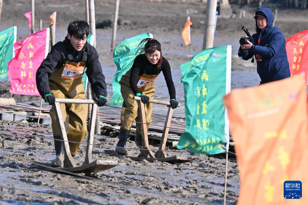 2月8日,一场滩涂“木泥马”挑战赛在福建省霞浦县冬瓜山赶海基地举行,选手们用传统赶海工具“木泥马”(又称“泥橇”)在滩涂上接力滑行、奋勇争先,以别样方式迎接马年春节。“木泥马”这一传统渔具如今变身地方特色文旅项目,成为游客赶海新玩法。同时,霞浦县宏昌工业文创基地内的跑马场和马文化美术展也随春节临近热度攀升,吸引游客参观、体验。
