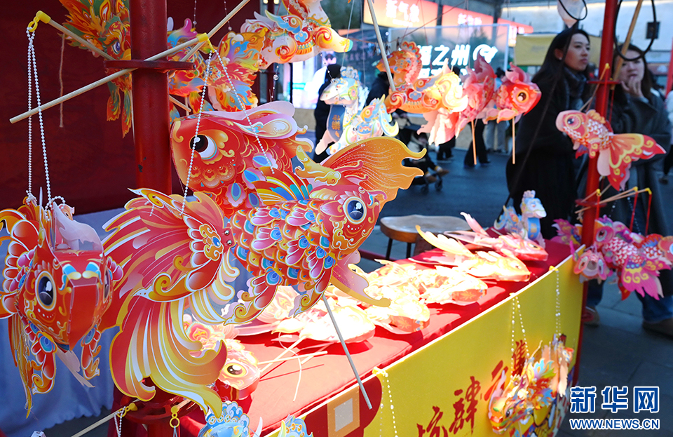 2月11日,在福州上下杭历史文化街区拍摄的花灯摊位。新华社记者 林善传 摄