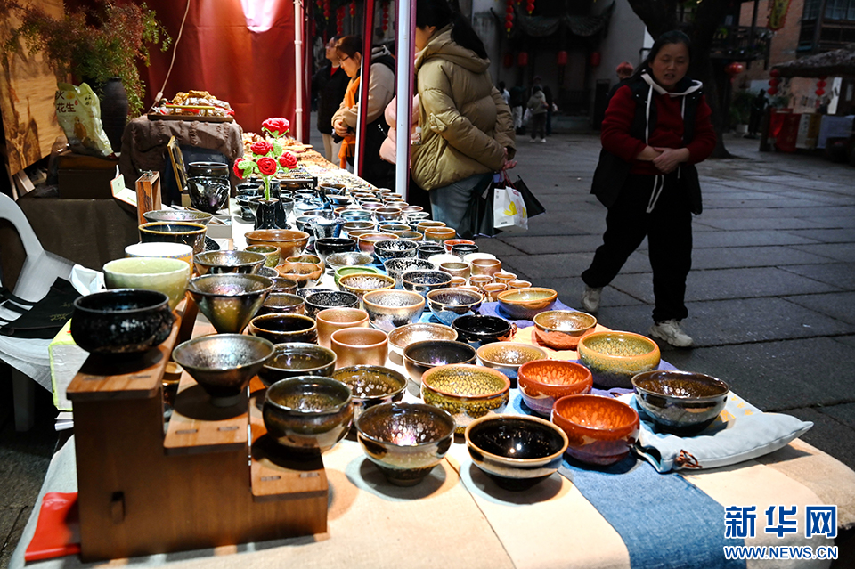 2月11日,在福州上下杭历史文化街区拍摄的供市民游客观赏选购的建盏工艺品。新华社记者 林善传 摄
