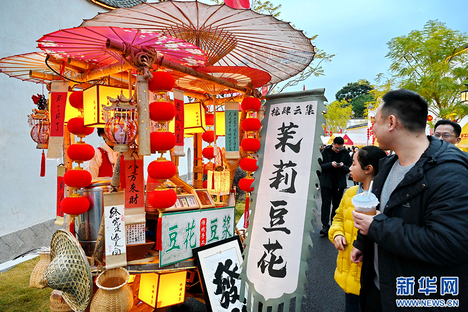2月11日,在福州上下杭历史文化街区拍摄的茉莉豆花摊位。新华社记者 林善传 摄