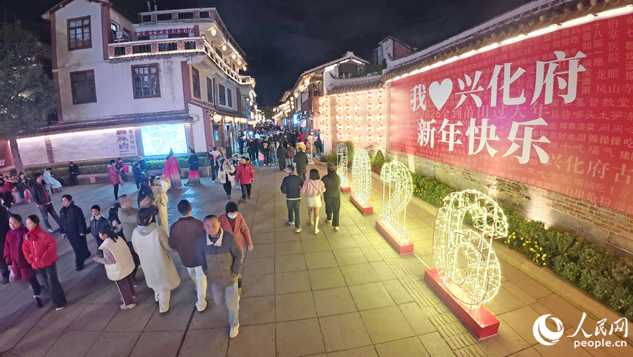 兴化府古街灯火璀璨,游人如织。人民网记者 李昌乾摄