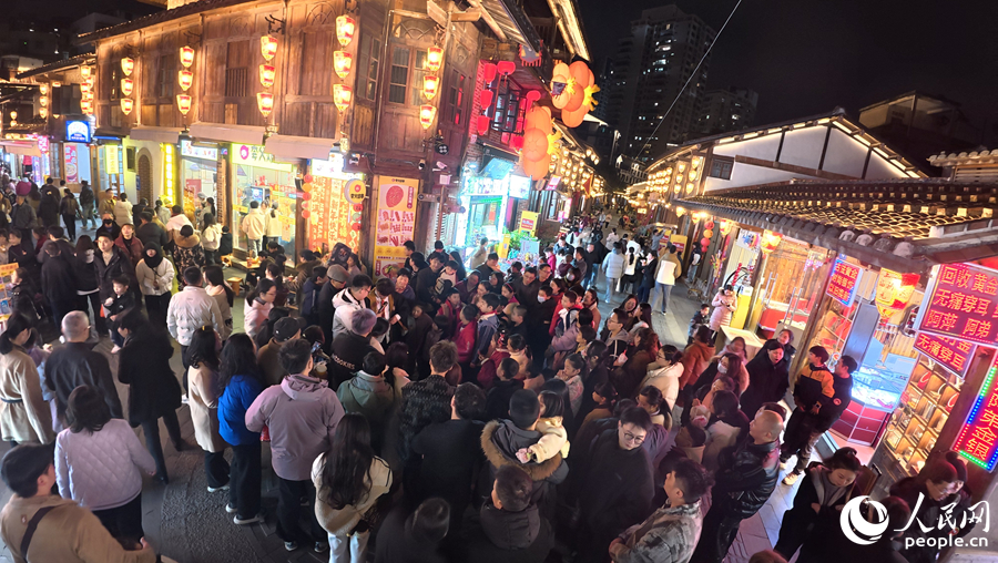 人民网莆田2月14日电 (记者李昌乾)张灯结彩、人头攒动,宋韵古风与新潮元素交融,处处是相得益彰的烟火气与文化味……这是属于莆田兴化府历史文化街区的新春热闹。