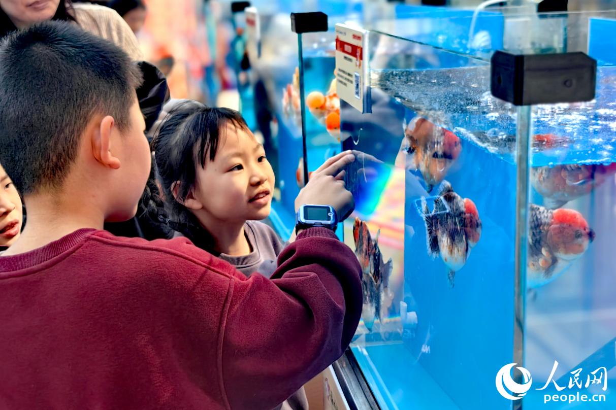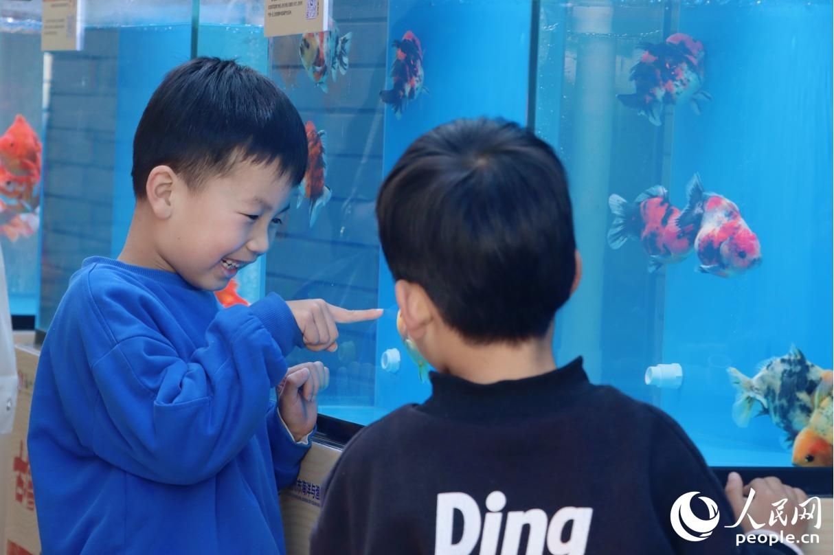 小朋友饶有兴致地讨论金鱼。人民网记者 叶青卿摄