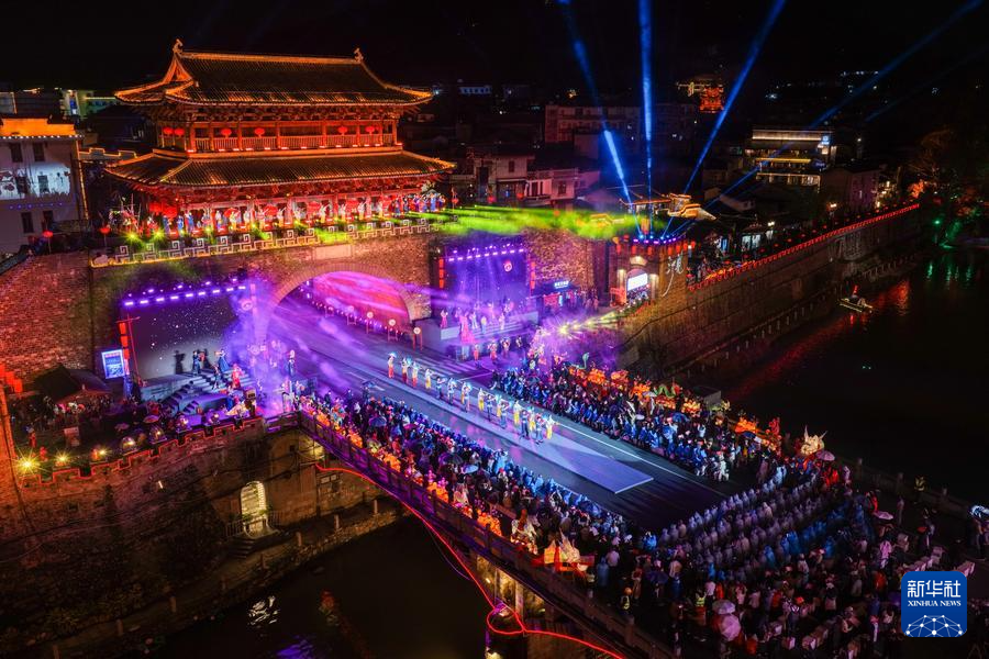 长汀“非遗奇妙夜”现场(无人机照片)。新华社发(肖和勇摄)