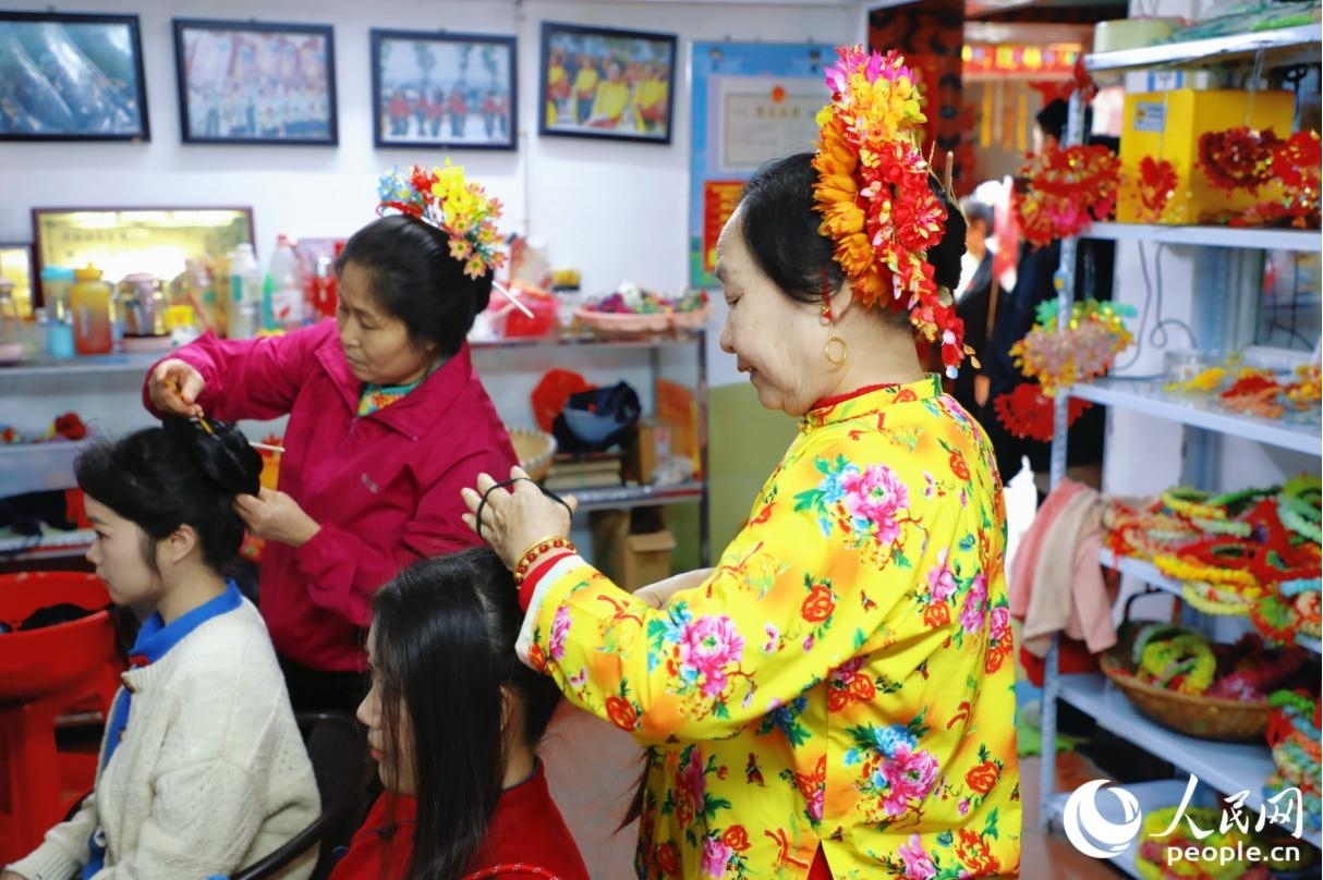 簪花插满鬓,既扎了头发,又显得美观。人民网记者 李唯一摄