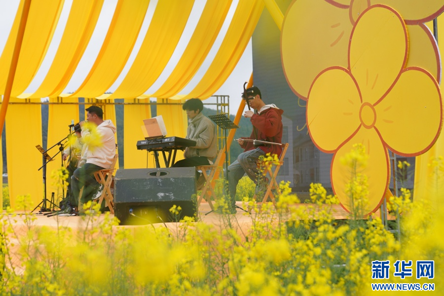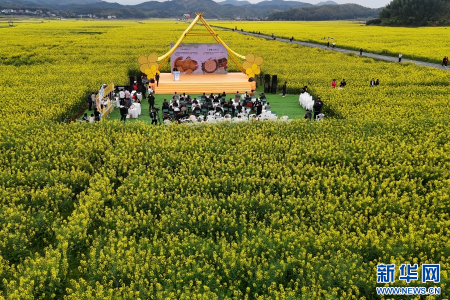 交流推广活动在油菜花海中拉开帷幕。(新华网 林晨 摄)