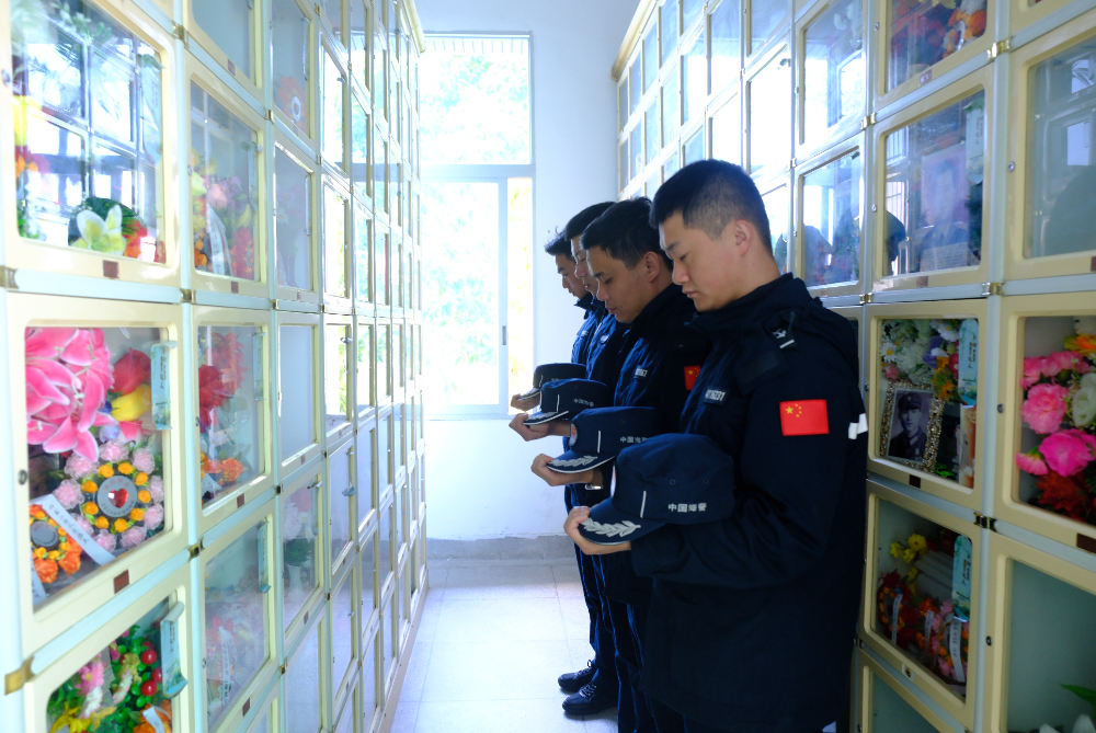 4月1日,海警执法员前往福州市文林山革命烈士陵园,看望该局两名牺牲战友。新华网发(王昊 摄)