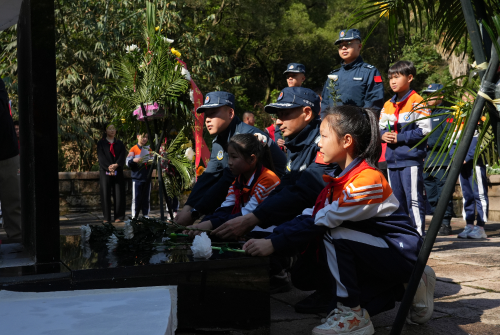 4月1日,福州海警局联合驻地小学在马尾区烈士陵园开展清明祭扫活动。新华网发(王昊 摄)