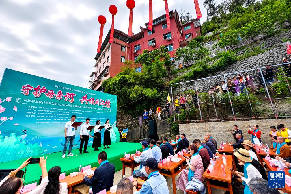 这是在福州市闽侯县白沙镇金钟阁畔举行的增殖放流活动现场(4月25日摄)。