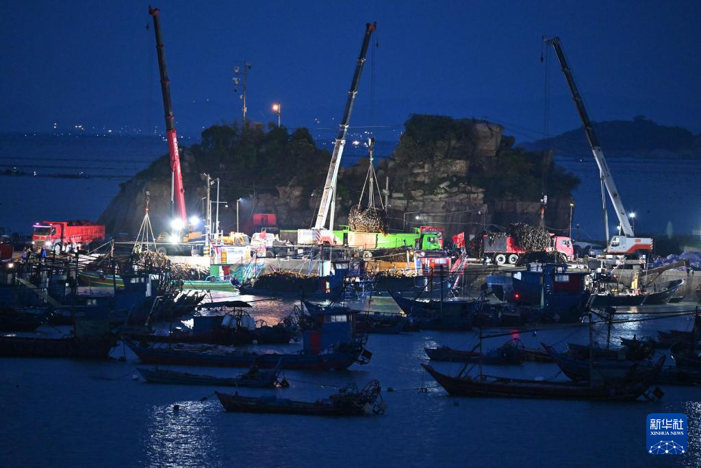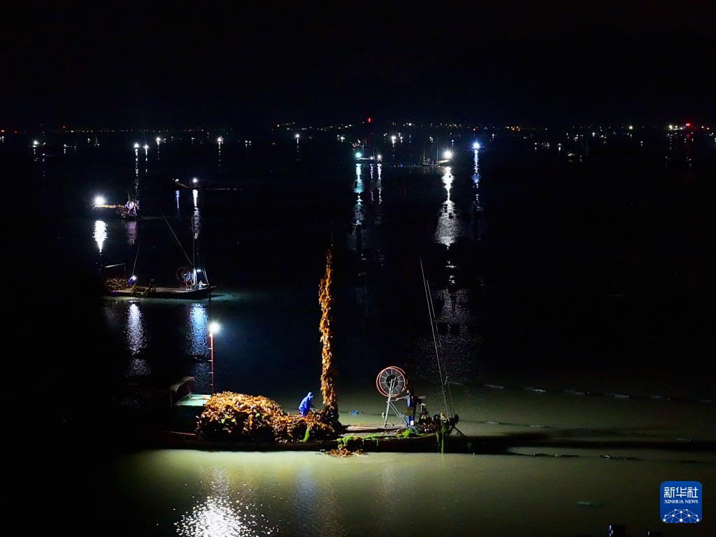 4月26日,福建省宁德市霞浦县沙江镇渔民在凌晨时分收获海带。新华社发(陈伟滨摄)