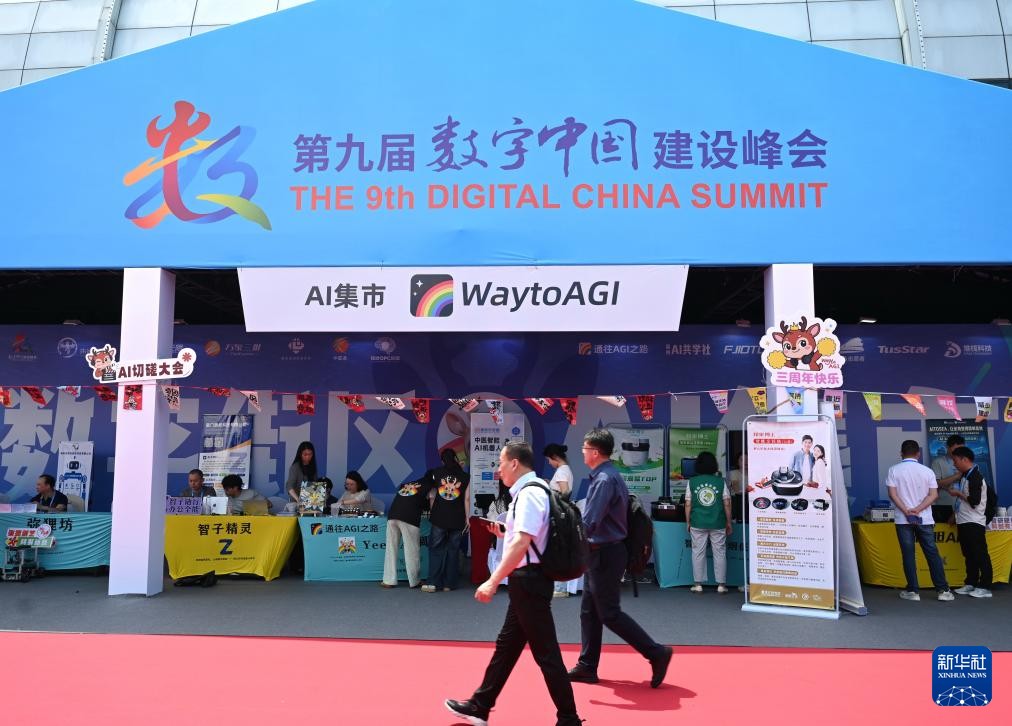 这是在福州海峡国际会展中心拍摄的数字街区AI集市一角(4月28日摄)。新华社记者 林善传 摄