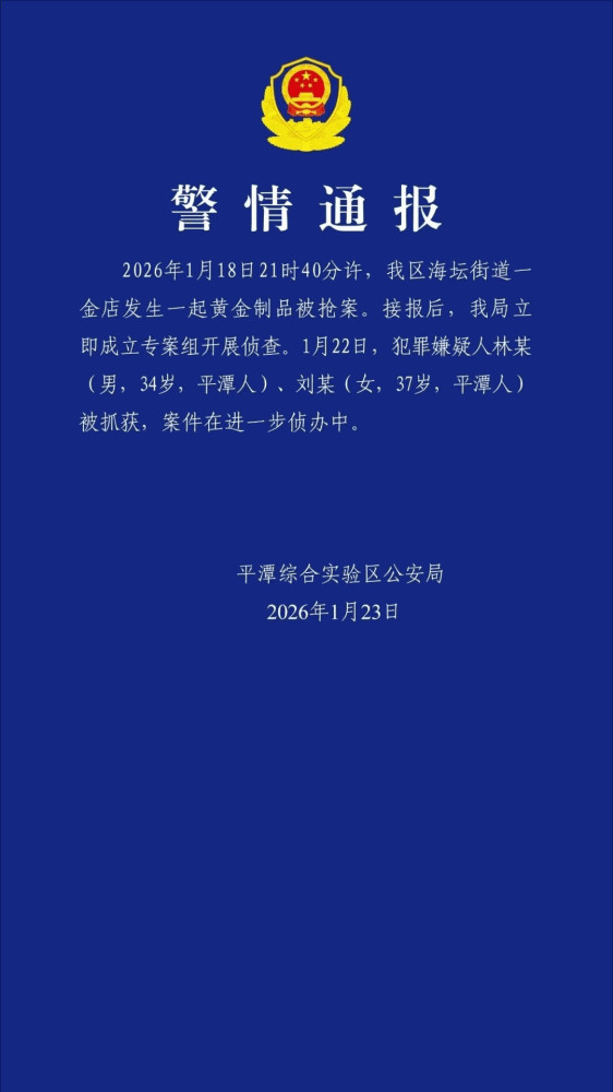 警方通报!福建平潭金店抢劫案2名犯罪嫌疑人已被抓获