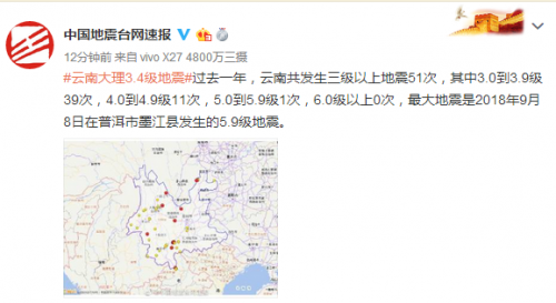 大理发生3.4级地震什么情况?云南大理3.4级地震现场图最新消息
