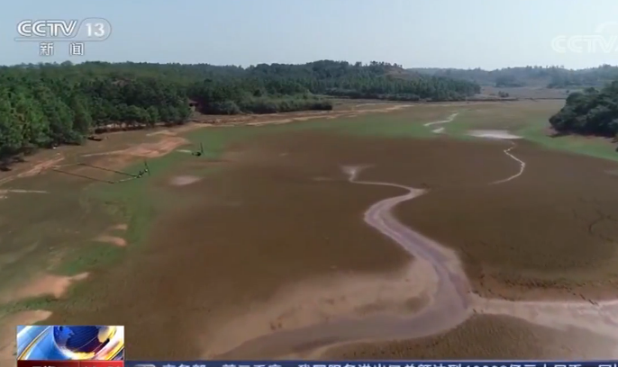 央视网消息: 受持续干旱少雨影响,近日,江西多地水库出现干涸现象,农业减产严重。