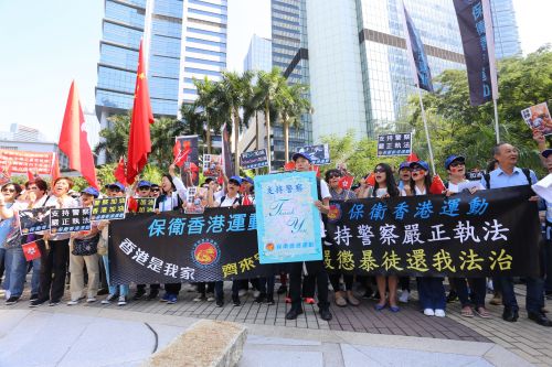 “支持警察,严正执法。”“协助警察,打击犯法。”“警察加油,香港加油。”“阿Sir加油,Madam加油。”现场口号声此起彼伏。“保卫香港运动”成员表示,香港近几个月暴力冲击愈演愈烈,黑衣暴徒多次纵火,投掷镪水弹、路牌、砖头及汽油弹等,其行为已远超所谓的“和平示威”,严重破坏了社会秩序。最令人痛心的是,原本在国际上享有良好声誉、经专业培训的香港警队不断在网上被抹黑、起底,甚至连他们的家人都受到恐吓伤害。